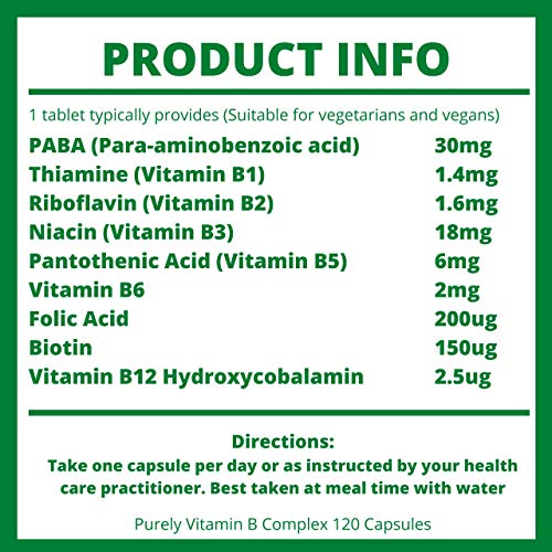 Bulking Agent: Maltodextrin, Capsule Shell: Hydroxypropyl Methylcellulose, Para-Aminobenzoic Acid, Niacin (as Nicotinamide), Pantothenic Acid (as Calcium Pantothenate), Anti-Caking Agent: Magnesium Stearate, Vitamin B6 (as Pyridoxine Hydrochloride), Thiamin (as Hydrochloride), Riboflavin, Folic Acid, Biotin, Vitamin B12 (as Cyanocobalamin)