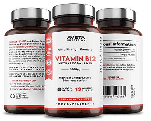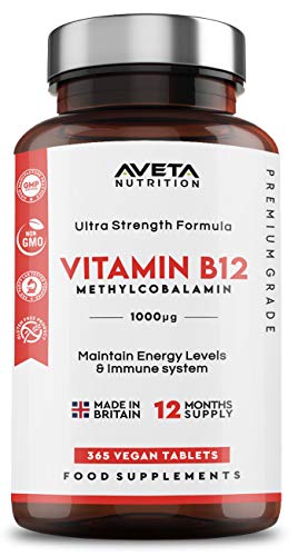Why Buy Aveta Nutrition Vitamin B12? ✔PREMIUM ADVANCED FORMULA – Our vitamin B12 1000mg supplement is derived from Methylcobalamin the Most purest form of B12. ✔12 MONTH SUPPLY – Amazing value ✔100% MONEY BACK GUARANTEE – No questions asked ✔Suitable for Vegetarians and Vegans ✔UK PRODUCED – Our Vitamin B12 Premium Grade High Strength produced in United Kingdom to the HIGHEST GMP QUALITITY MANUFACTURING FACILITY STANDARDS in the world. ✔Aveta Nutrition based in the UK. Providing EXCELLENT, HIGH QUALITY NUTRITIONAL SUPPLEMENTS