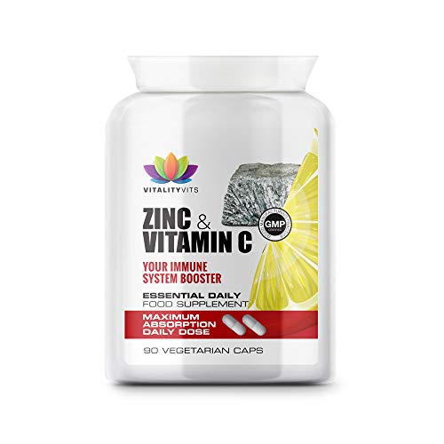 Vitamin C 1000mg + Zinc 40mg – Premium Quality 90 Capsules – Ascorbic Acid + Zinc – Support Immune System – UK Made GMP…