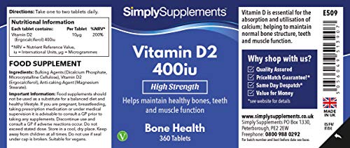 Vitamin D Tablets 400iu | 360 Tablets = Up to One Year Supply | Supports Healthy Bones, Teeth, Muscles & Immune System…