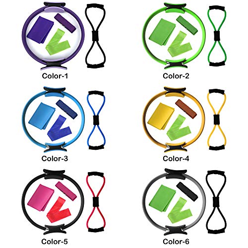 Walmeck- 5pcs Yoga Equipment Set Pilates Ring Yoga Cotton Strap Resistance Loop Band Figure 8 Resistance Band Exercise Stretching Strap
