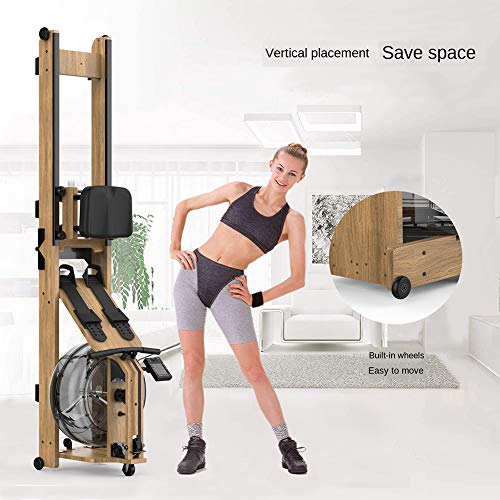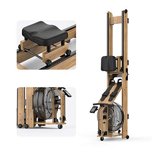 ELEGANT DESIGN & EASY STORAGE: This wooden rowing machine has beautiful curves like the drops. The wooden and nicely designed body will fit in your house like a furniture. And the rowing machine can be stored easily by standing it. There are wheels at the bottom so it can be moved on the flat floor