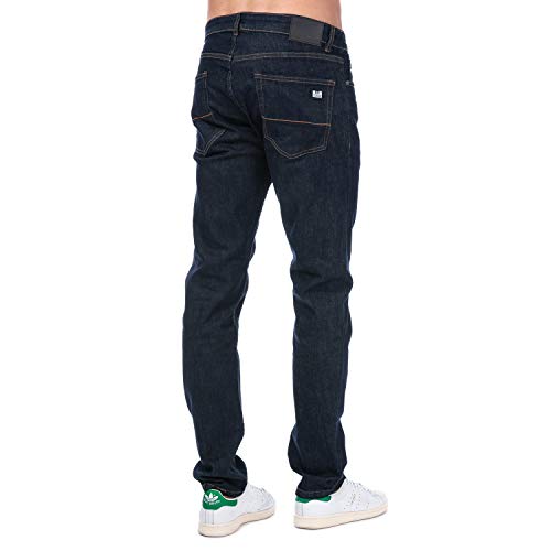 Mens Weekend Offender Tapered Fit Jeans in Denim- Button fastening- Tapered fit- Contrast stitching- Five pocket design- Stretch material allows for a comfier fit- Branding to reverse waist- Inside leg 30 Inch approximately- 99% Cotton, 1% Elastane. Machine Washable- Ref: WDE01TDRMeasurements are intended for guidance only
