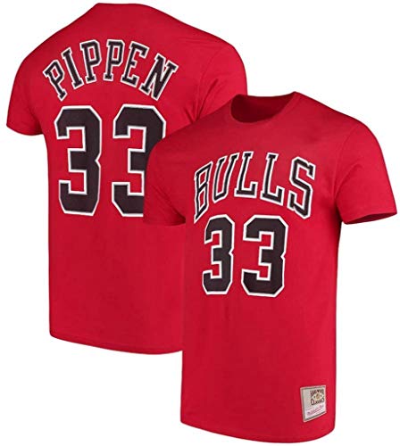 WZ Men’s Basketball T-Shirt Basketball Clothes Chicago Bulls 33# Scottie Pippen Retro Round Neck Jeysey, Fitness Sports Breathable Top,Red,M:165~170cm