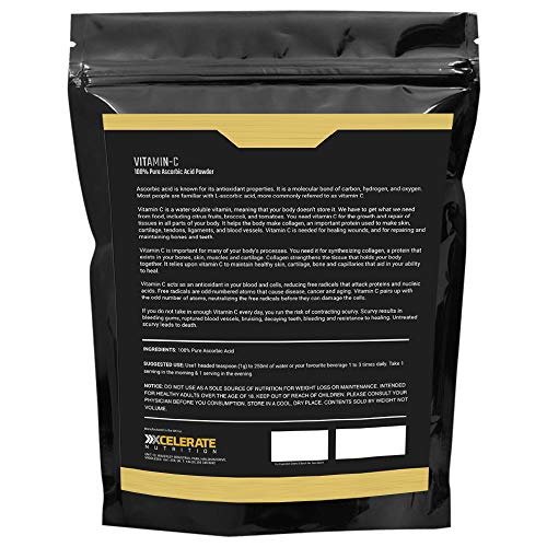 Vitamin C also helps the body make collagen which is an important protein used to make skin, cartilage, tendons, ligaments, and blood vessels. Ascorbic Acid can be easily combined with other powdered supplements or dissolved in liquid for easy ingestion.