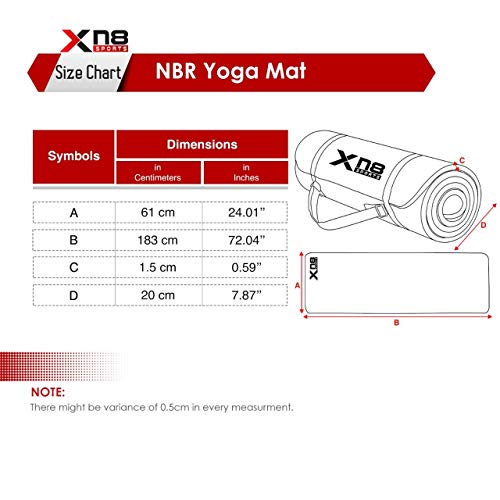 XN8 Padded Exercise Yoga Mat NBR 15mm Thick with Carry Handle Strap for Pilates, Exercise, Aerobic, Gymnastics, home exercises, fitness, Camping, Gym Non-Slip Large