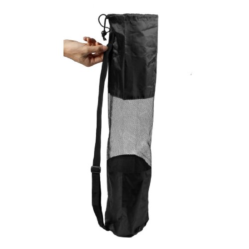 YKS 28″ X9″ Nylon Adjustable Strap Yoga Bag Portable Yoga Mat Bag Nylon Carrier Mesh Center Black