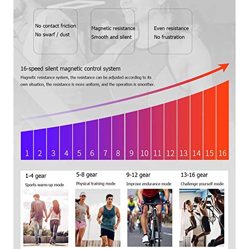 16-speed silent magnetic control system and 3 adjustable pedals: magnetic resistance system, 1-4-speed exercise warm-up mode, 5-8-speed fitness training mode, 9-12-speed increase endurance mode, 13-16-speed challenge self-mode, resistance The size ca