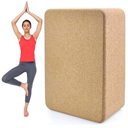 Yoga Block Yoga Brick, Natural & Eco-Friendly Cork Yoga Block to Support and Deepen Poses, Lightweight, Odor-Resistant and Moisture-Proof Cork Yoga Brick Non-Slip 9” x 6” x 4”
