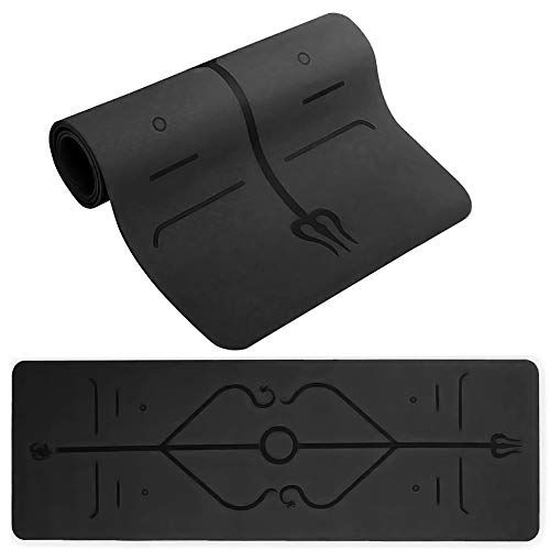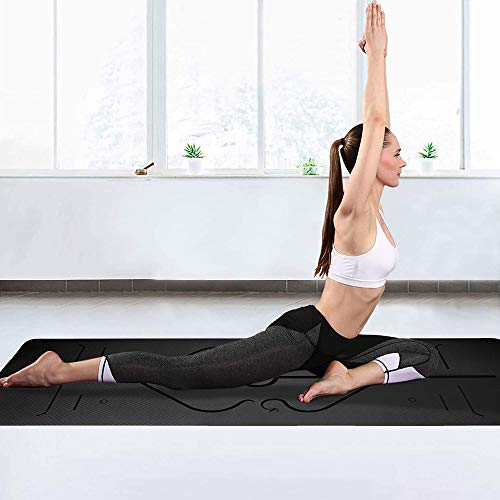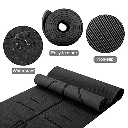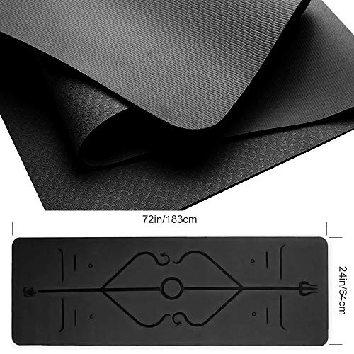 Yoga Mat – Eco Friendly TPE Gym Mat with Alignment Lines, Textured Non Slip Surface and Optimal Cushioning,Thick Non Slip Workout Mat with Carrying Bag Perfect for Yoga and Fitness – 183 * 61 * 0.6cm