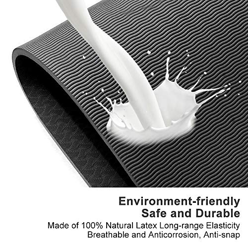 DOUBLE NON SLIP SIDED:Special sticky non slip texture on both sides and density higher than ordinary yoga mats, provides excellent traction and superior grip, and resistant to tearing and deformation. Non slip on wood floor, tile floor, cement floor,durable, no latex, high strength of tear resistance ,Moisture resistant.