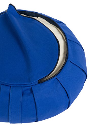 Durable Construction: The yoga Zafu bolster is filled with organic buckwheat hull, an organic that moulds to the shape of your body. It has a cotton cover with a zip closure. The cushion is pleated for additional durability