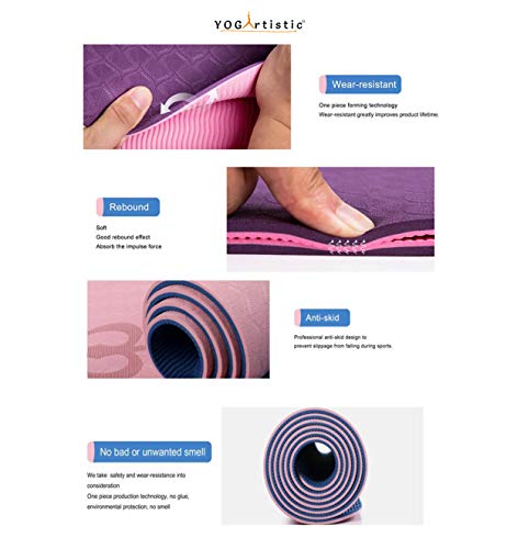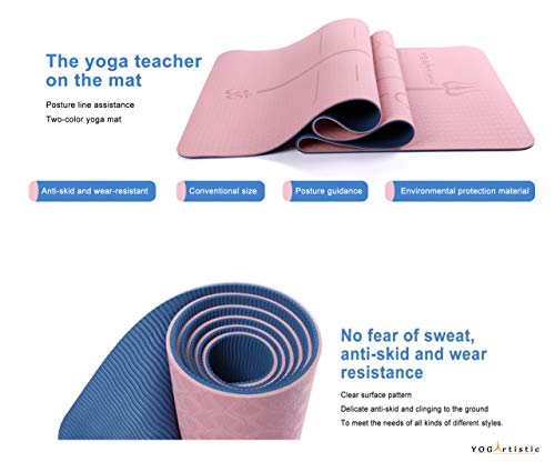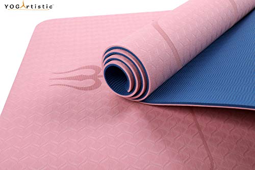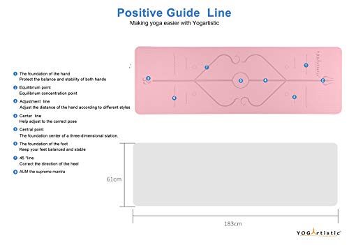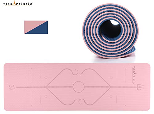 YOGARTISTIC Yoga Mat, Home Gym Non Slip Exercise Mat With Alignment Lines, Eco Friendly TPE, With Strap and Carrier Bag, For Gymnastics, Workout, Pilates, Fitness 183 X 61 X 0.6CM
