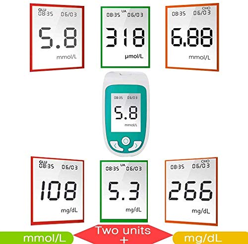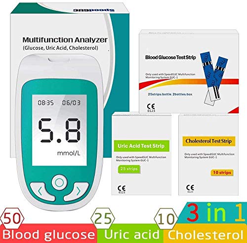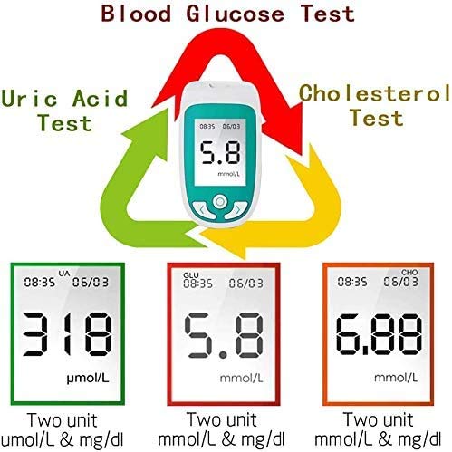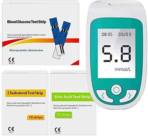 ZGYQGOO 3-In-1 Blood Glucose Test, Cholesterol And Uric Acid Monitor Kit,Monitoring Uric Acid-Cholesterol Diabetes with Test Strips And Lancets
